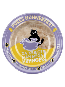 filet mięsny 85% (kurczak 71%, królik 14%), bulion 12%, nagietek 1%, olej lniany 1%, minerały 0,5%, skrobia roślinna 0,5%.