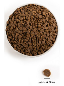 Wszystkie produkty – zarówno karmy, jak i akcesoria czy zabawki – powinny być używane zgodnie z ich przeznaczeniem oraz dopasowane do indywidualnych potrzeb zwierzęcia. Dobieraj karmę odpowiednią do wieku, wagi, rasy i stanu zdrowia swojego psa lub kota. W przypadku jakichkolwiek reakcji alergicznych, nietolerancji lub niechęci do pokarmu, przerwij jego podawanie i skonsultuj się z lekarzem weterynarii.